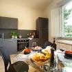 L'Appartamento Masaccio è composto da due camere da letto matrimoniali (160x195) con vista su Firenze, due bagni con doccia, una cucina attrezzata da cui si accede al giardino privato, un ampio soggiorno con spettacolare vista sull'uliveto circostante.